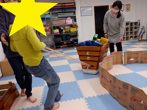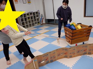 【Olinace成田】1月23日(月)(児発)逆さ自転車こぎ・(放デイ)ソリで荷物運び他