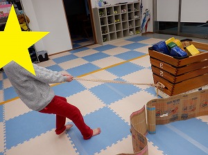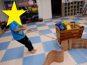1月23日(月)(児発)逆さ自転車こぎ・(放デイ)ソリで荷物運び他