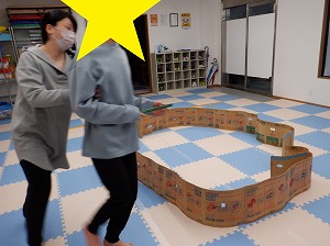 自由遊びの時間では、ぬいぐるみで街を作ったりミニカーで遊んだり