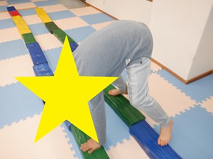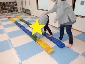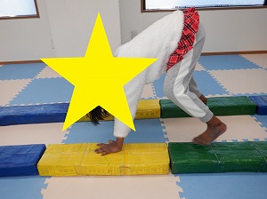 2本橋クマさんでは、平均台から落ちずにゆっくりと横歩きで進む事が出来ました。
