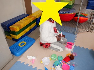 自由遊びの時間では、バランスボールで遊んだりぬいぐるみなどで遊びました(^^♪