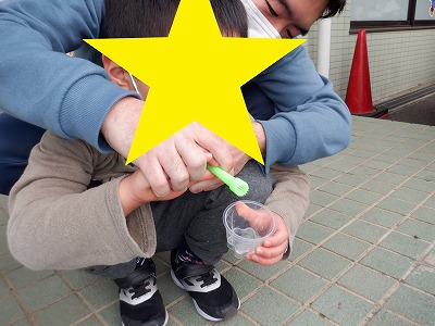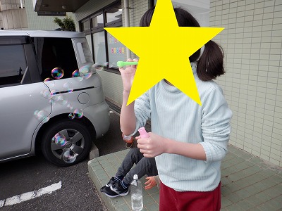 自由遊びの時間では、シャボン玉、かくれんぼ、ペーパークラフトなどをして遊びました。