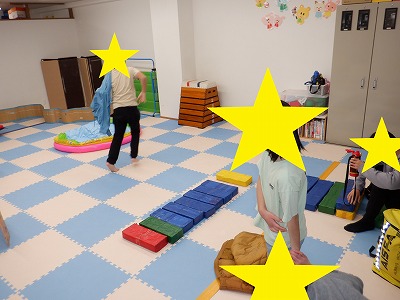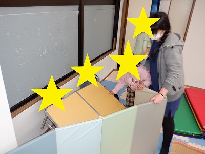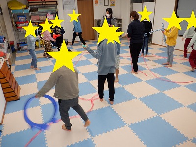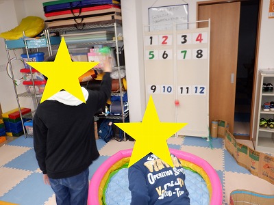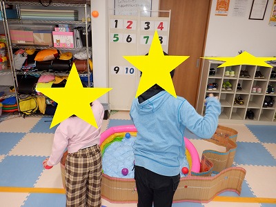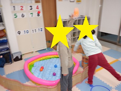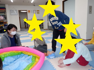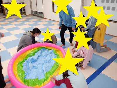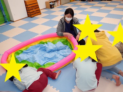 運動遊びの準備でプールを膨らませていると、みんながお手伝いをしてくれました。