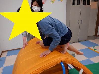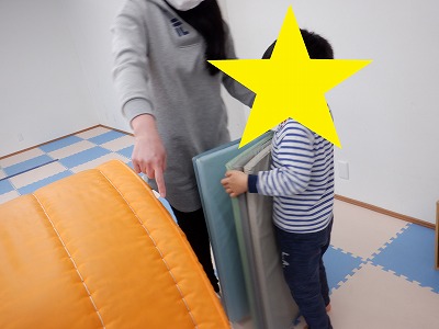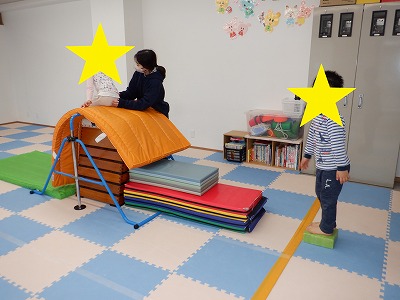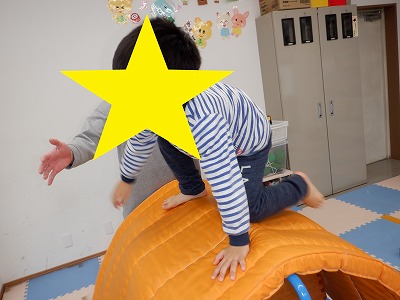 壁登りではお友達と順番を守り、マットをギュッと掴んで自力で登る事が出来ました。