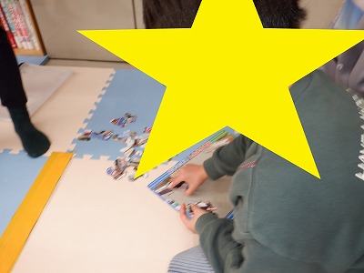 自由遊びは、ミニカーやパズルなどで遊びました。