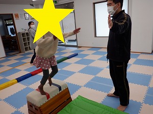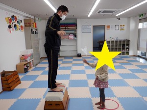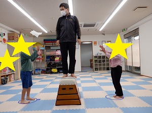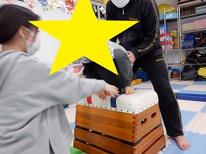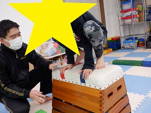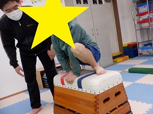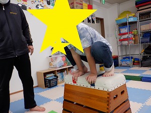 カエルの一休みでは、跳び箱の上でカエルのポーズで一休み❣