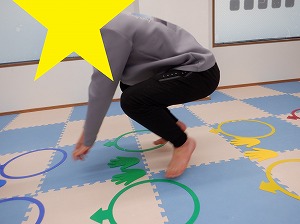 ウシガエルジャンプでは、手・足・手・足とリズム良く進んで行きます。