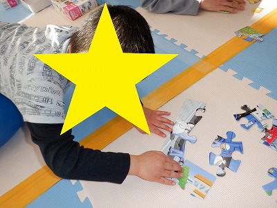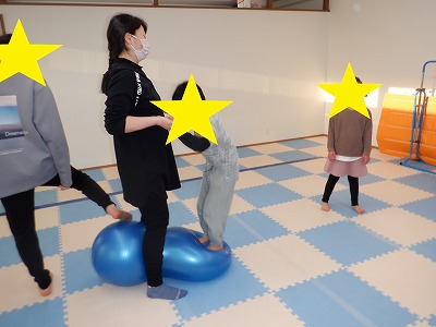 自由遊びは、バランスボールやパズル、忍者ジャンプ等で遊びました。