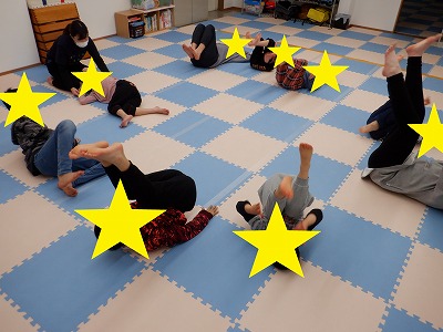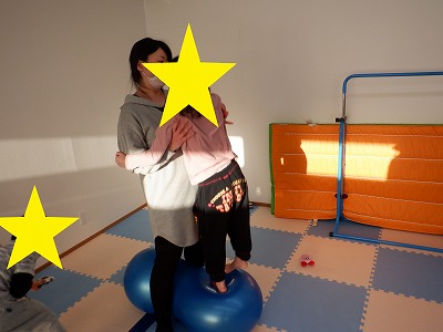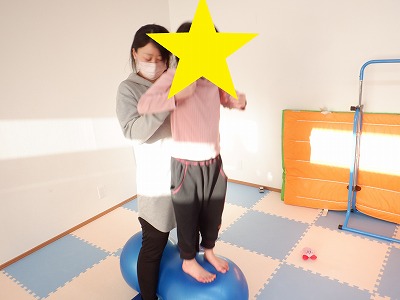 自由遊びの時間では、風船バレー、バランスボール、ペーパークラフトなどで遊びました。
