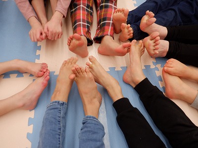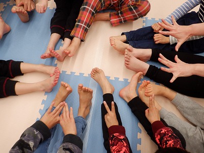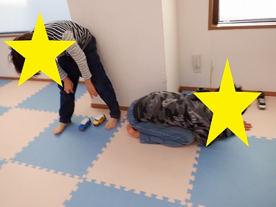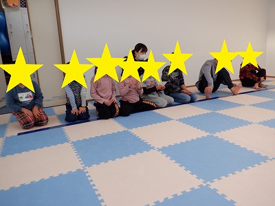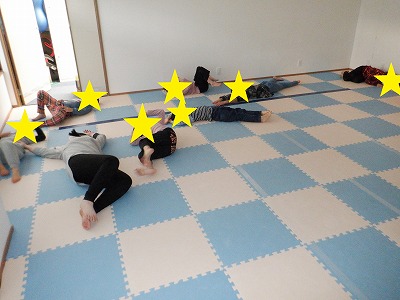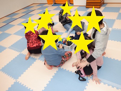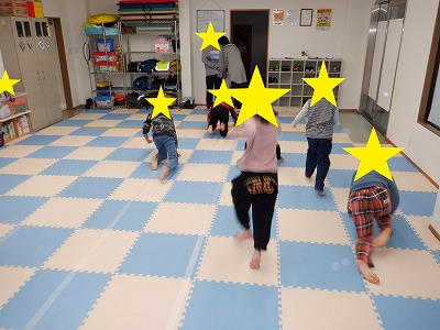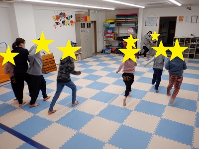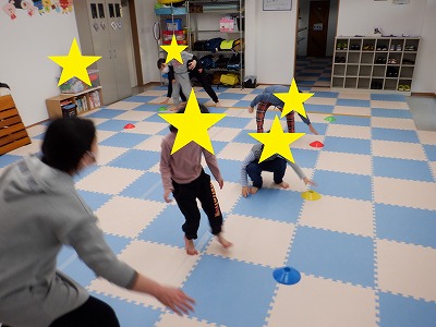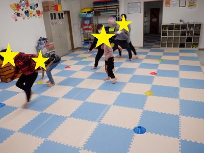 ゆっくり歩いて鬼役のお友達に近づき、鬼役のお友達が振り返ったらすぐに止まります。