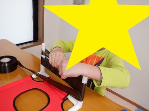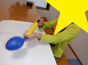 鬼は外、福は内と声に出しながら鬼の口に向かってボールを投げます(^^♪