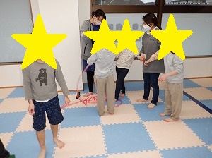 2人でジャンプ→鬼たいじ(豆まき)☆