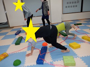 クマさん&クモさんで障害物またぎ☆