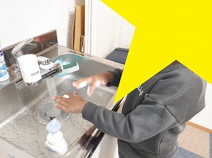 連絡帳を出して身支度を整えてから手洗いうがいを行います❣