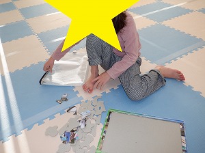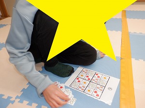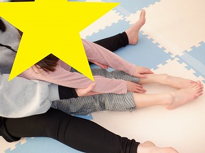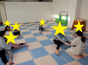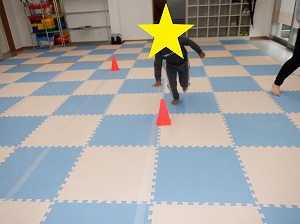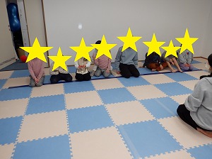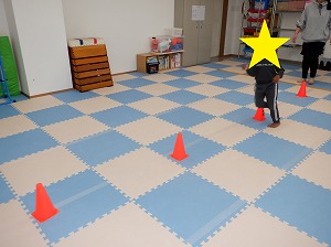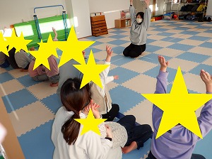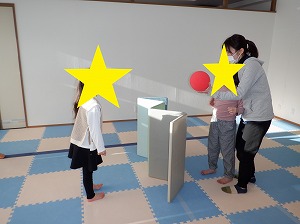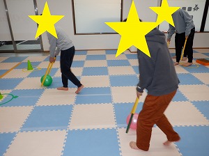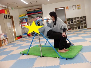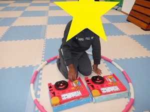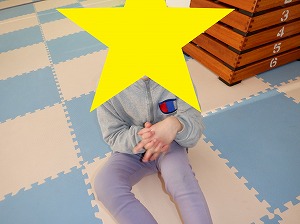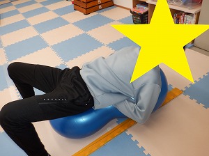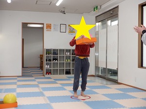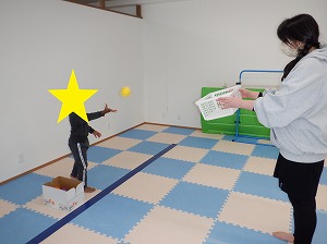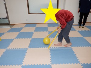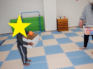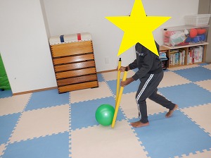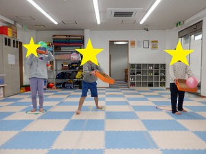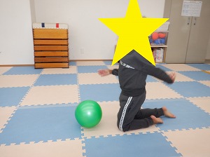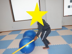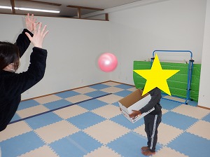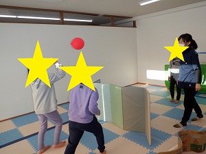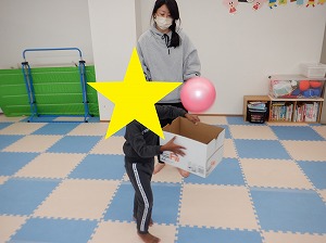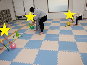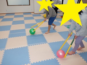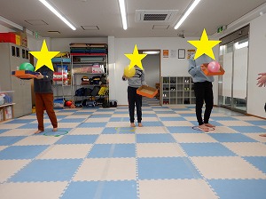 自由遊びの時間では、バランスボールで遊んだりカップタッチレースを