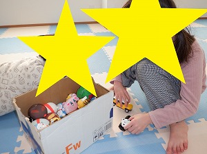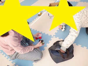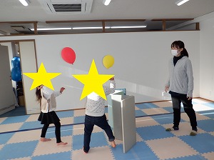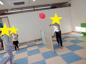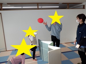 自由遊びの時間では、ミニカーやぬいぐるみで遊んだり風船バレーを
