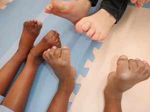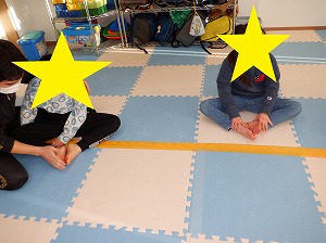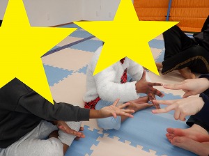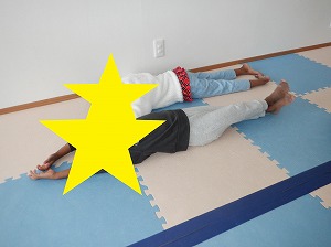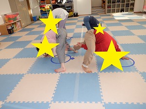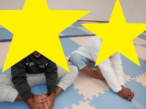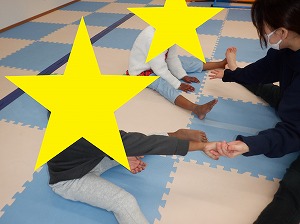 足の間からお友達の顔を見ながらジャンケンポン❣