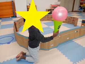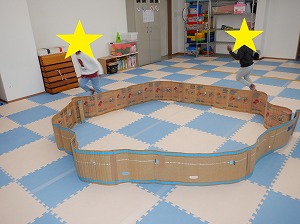 自分達で段ボールを出して円を作ってかけっこをして遊びました。