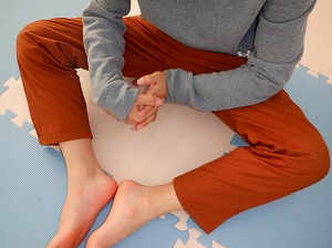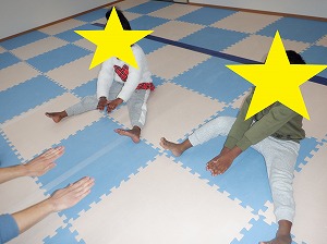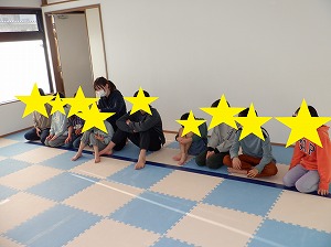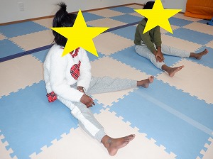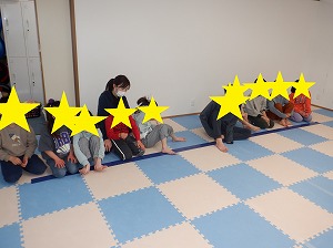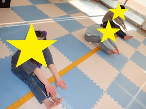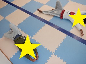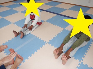 水分補給後は床に寝ころび「動から静への切り替え練習」です☆