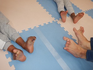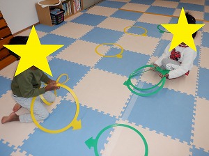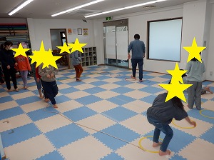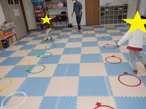 (最後はフープを使ってカンガルージャンプの練習も組み込みました!両足跳びも上手になりましたね☆)