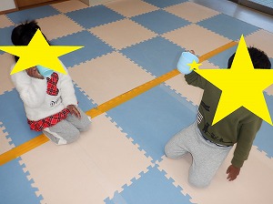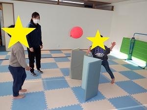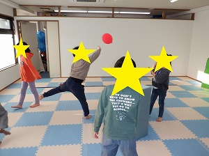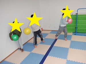 児発のお友達は身支度を整えてから運動遊びの時間になりました。
