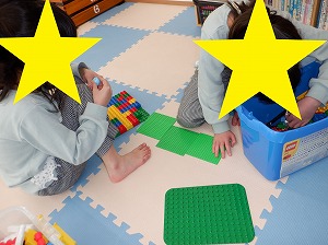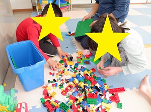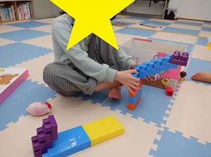 自由遊びの時間は、児発のお友達と放デイのお友達で的当てをやったり、ニューブロックなどで和気あいあいと遊びました。