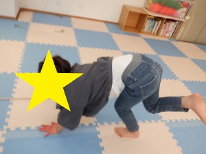片足を上げて、腕の力をフルに使い自分の体を支えて前に進みます。
