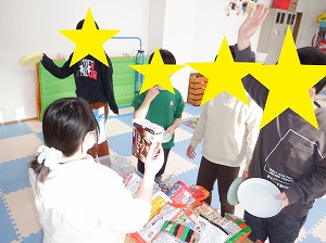 自由遊びではみんなで、ハンバーガーショップなどのお店屋さんごっこをして遊びました。
