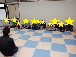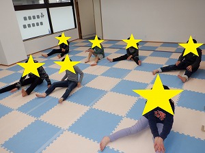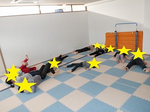 水分補給後は床に寝ころび、ゆっくりと呼吸を整えましょう☆