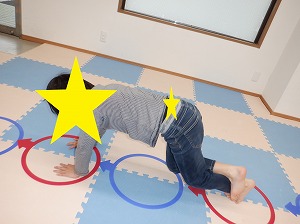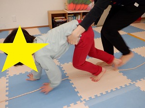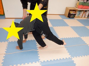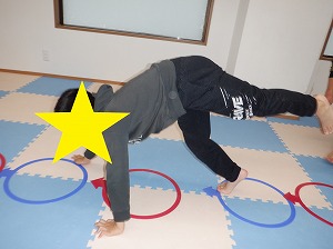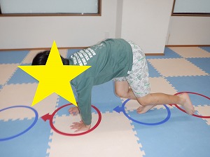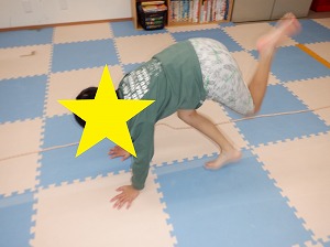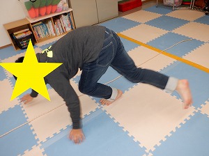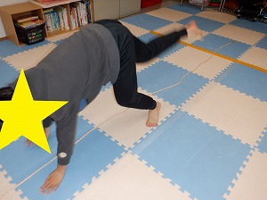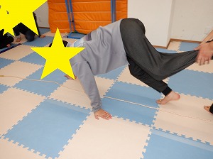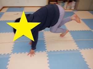 片足を上げて、腕の力を使って自分の体を支えながら前に進みます。
