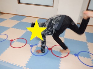 縄を挟んでジグザグでの片足クマさんにも挑戦しました。