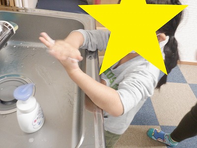 手洗いをして運動遊びに備えてエネルギー補給です。