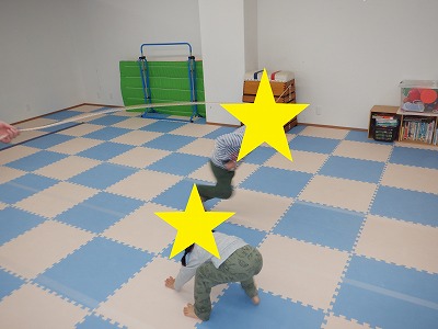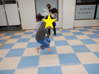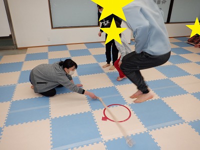 縄をよく見てタイミングよく両足を揃えてジャンプしましょう。