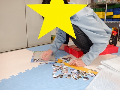 自由遊びは、ペーパークラフト、ジグソーパズル、歌絵本等で遊びました。