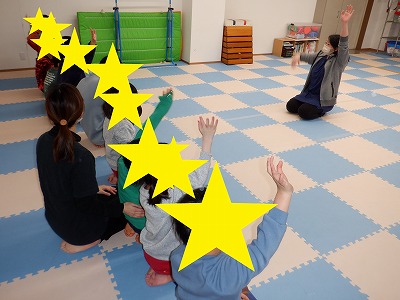 掛け声をよく聞いて、右手と左手を上げたり下げたりすることができました。