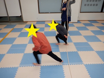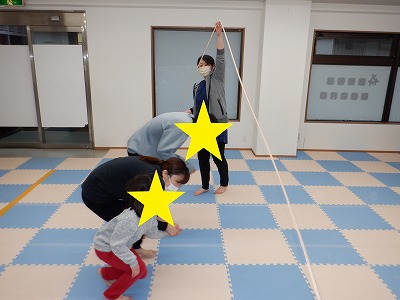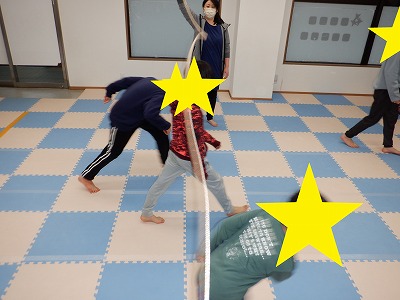 途中で立ち止まらず走り抜けたり、縄をジャンプしましょう。