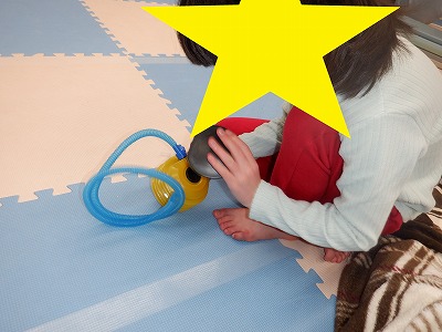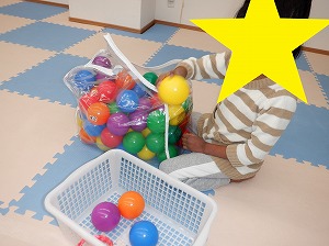 自由遊びは、バランスボール、ペーパークラフト、風船バレー、縄跳び、歌絵本等で遊びました。