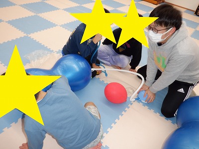 2月13日(月)(児発)バランスボールでバランスとり他 (放デイ)足きりごっこ他