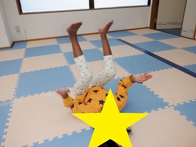 鬼さんが振り向いたら、面白い格好で止まっているお友達もいました。