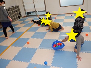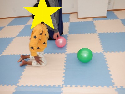 ワニさんで進み、ボール転がしをしながら戻ります。