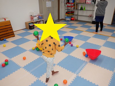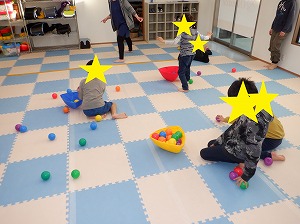 だるまさんがころんだをしながら、ボールを集めます。