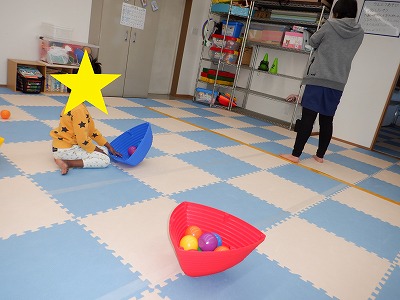 鬼さんの掛け声を聞きながら素早くボールをかごに入れていました。