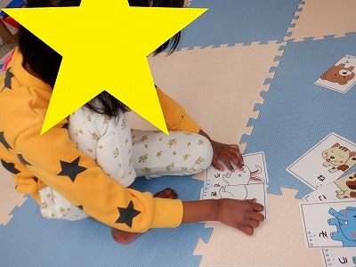 自由遊びの時間では絵と平仮名やカタカナのマッチングカードでのお勉強したり、歌の絵本等で遊びました。