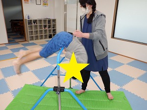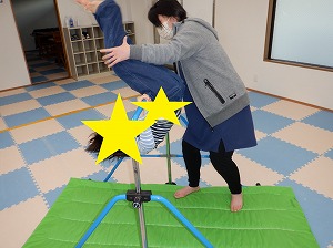 放デイのお友達は斜め懸垂から各自好きな鉄棒メニューに挑戦をしました。