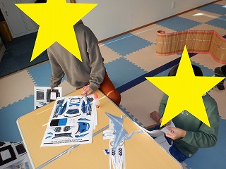 自由遊びは、ペーパークラフト・歌絵本・縄跳び等で遊びました。