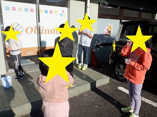 お天気が良かったので外でシャボン玉をしました♪みんなが吹いたシャボン玉が太陽でキラキラと輝いていました(*^^*)