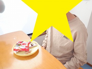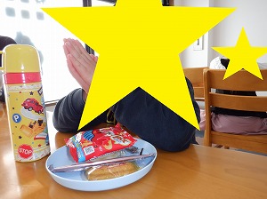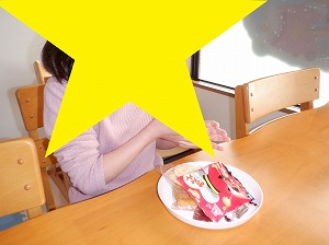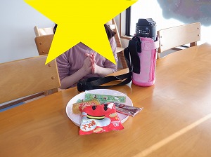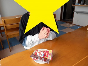 個別に黙食をします。「いただきまぁす♡」