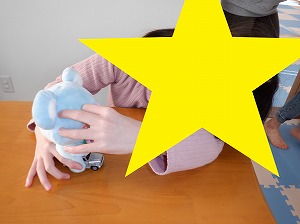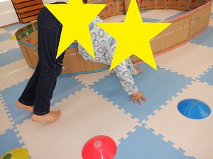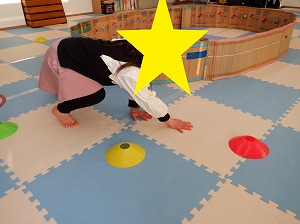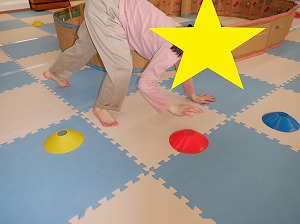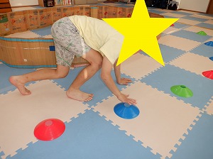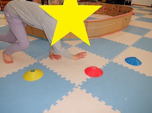 クマさん歩きで指示されたカップの色をタッチ❣