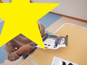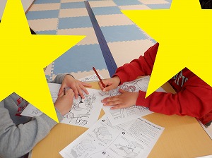 自由遊びの時間では、ペーパークラフトや塗り絵をしたり風船バレーをして