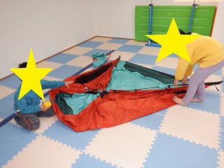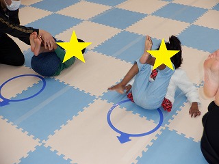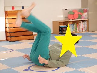 両手で足を抱えて丸くなり後ろにゴロン!起き上がった後に決めポーズをかっこよく決めるお友達もいました✨